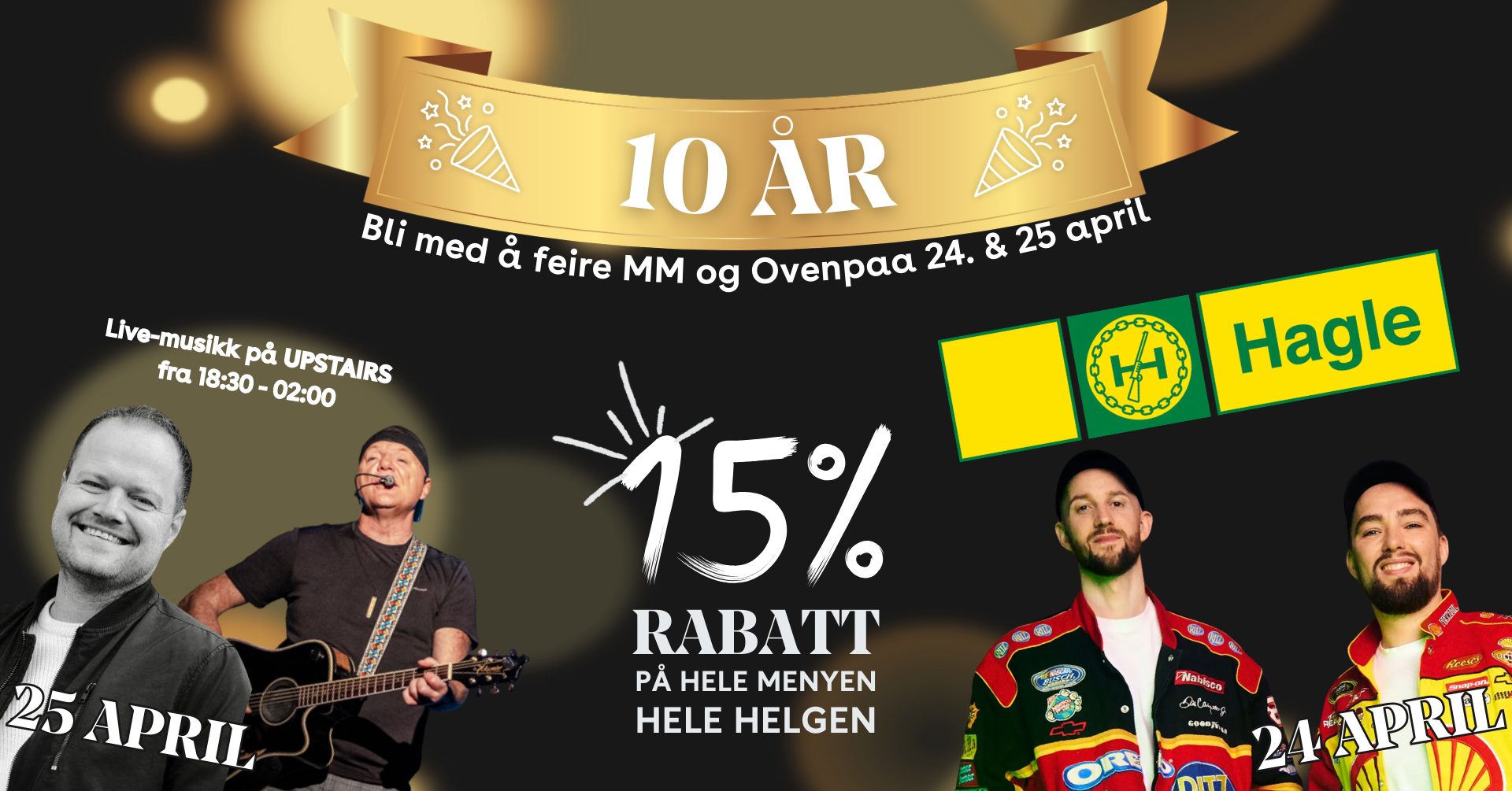 Gjennom helgen kjøres det også 15 % rabatt på matmenyen hos MM Café & Bar.